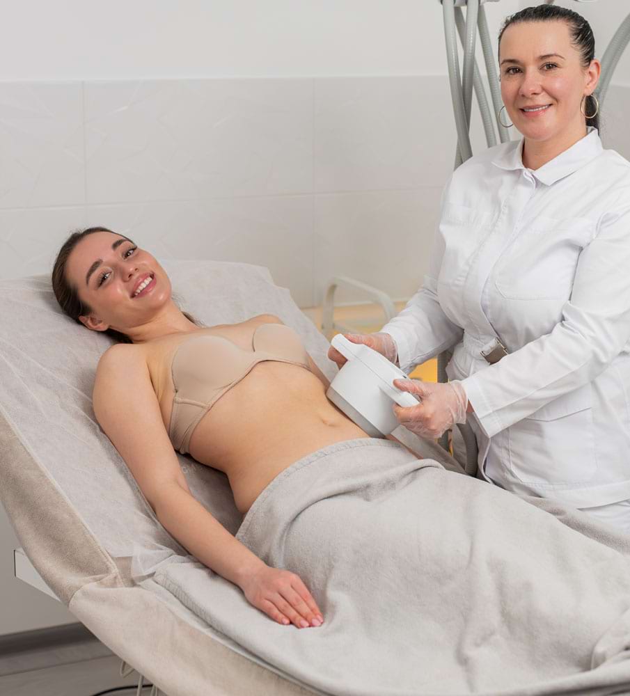 - Technológie pracujú synergicky: Tuk mizne, koža sa spevňuje a kontúry sa formujú.